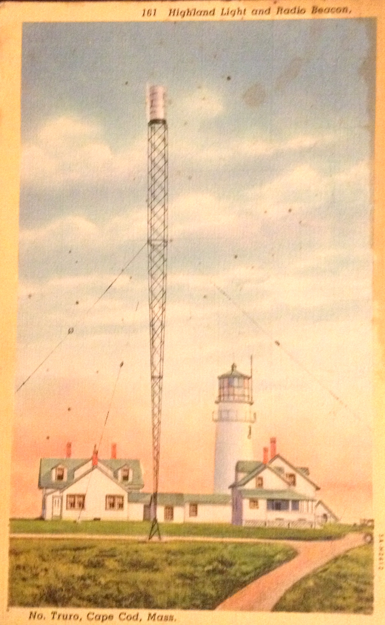 At the time this postcard was printed and mailed, there was still a train that traveled the length of Cape Cod, all the way to Provincetown. While Provincetown quickly became a bustling and densely populated settlement, Truro has remained primarily rural. One of its fine features are the expansive sand dunes, marshes, and the Pamet River, shown in the above postcard.